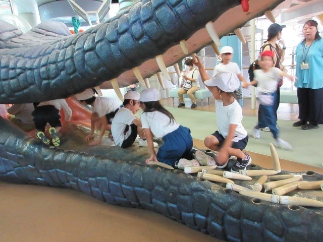 大きなワニの中に入って遊んだり、遊具の塔で思いっきり体を動かしたり、昭和30年代の町並みを見て驚いたりの一日でした。