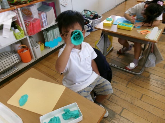 具を作りパンにはさんでハンバーガーを作っている子、お友達の顔をモデルにしたパンを作っている子、クレープのようにくるくる巻いたパンを作っている子、いろいろなパンができあがりました。