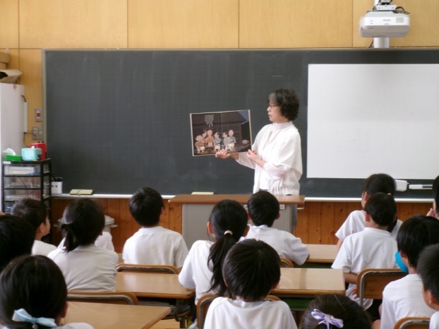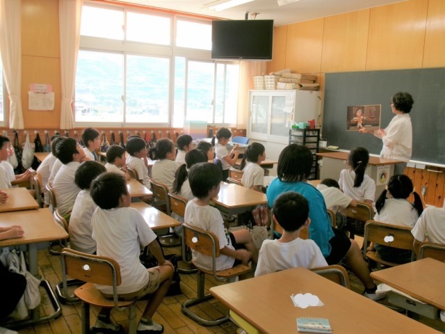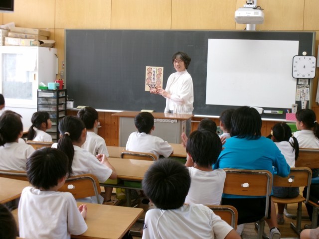 かつらぎ町のよみきかせボランティアさんが来てくださり、昼読の時間に2年生に「らくごえほん ごんべえだぬき」を読んでくださいました。