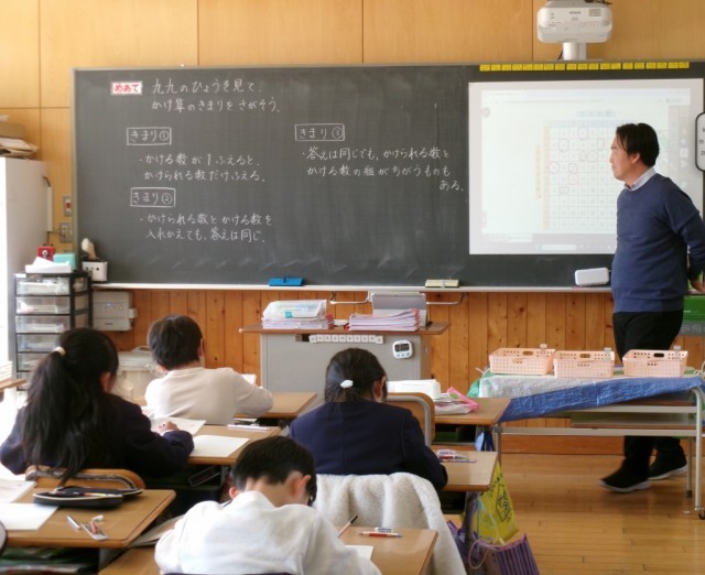 「九九のひょうを見て、かけ算のきまりをさがそう。」をめあてに学習しました。