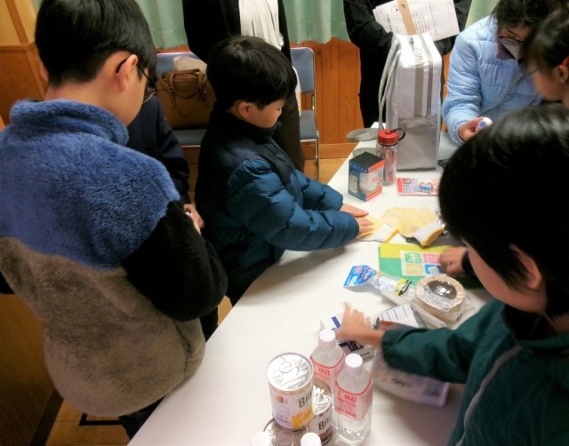 ○×クイズで防災についての学習をしたり、実際に避難バッグの中身を見て避難時に必要なものの確認をしたりして、自分たちができる減災について考えました。