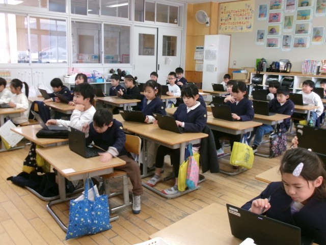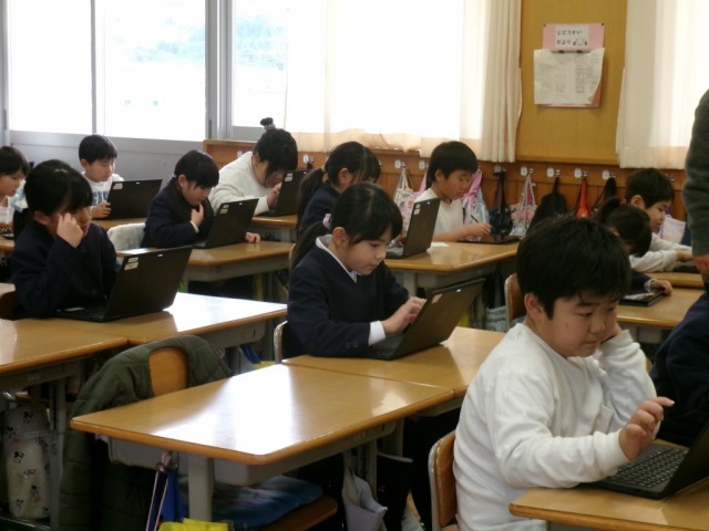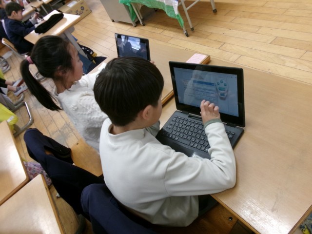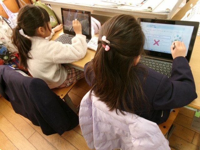 2年生児童は、タブレットの扱いにも慣れどんどん問題を解いていました。