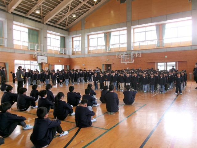 卒業式に向けて、全校児童で式歌の練習をしました。