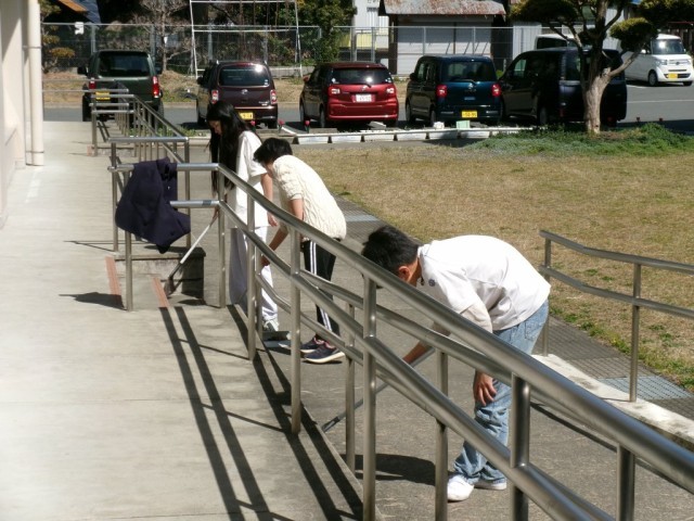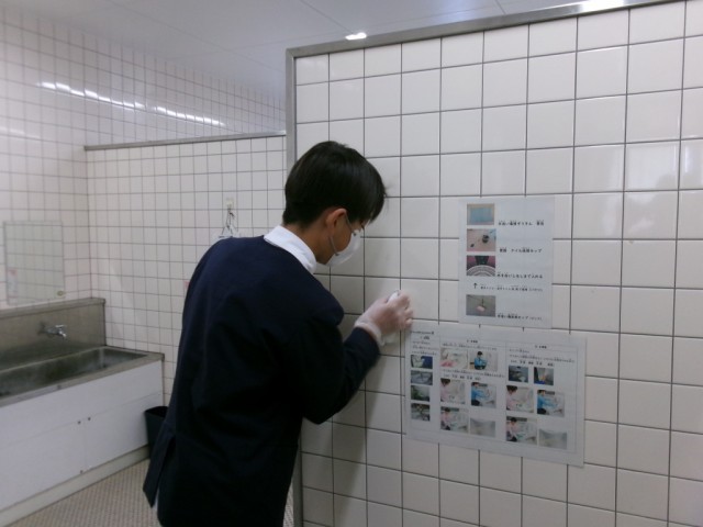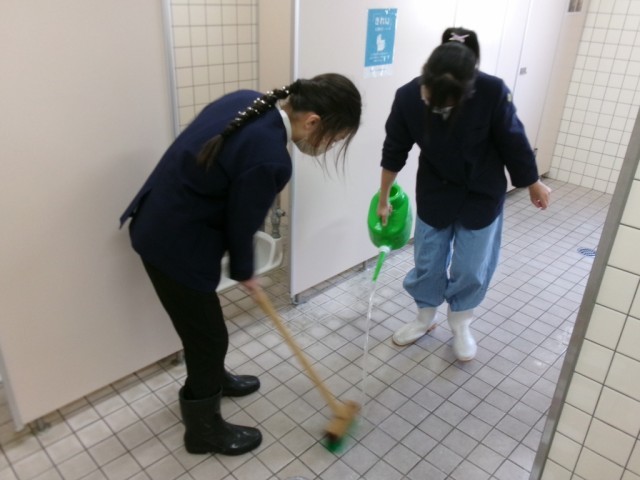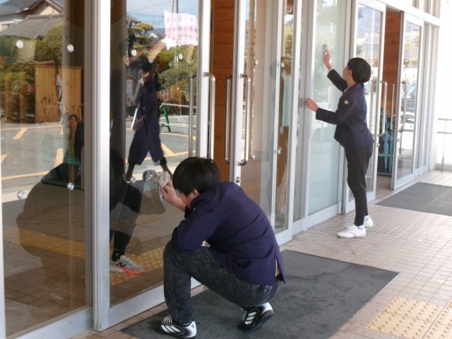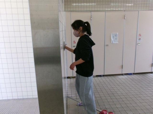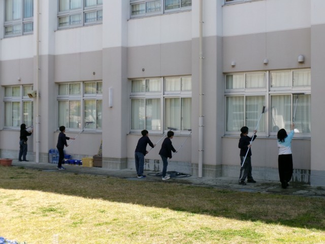 「6年間、お世話になった校舎をピカピカに!」と、6年生がトイレ掃除や窓ふきなどをしてくれました。