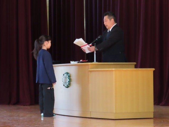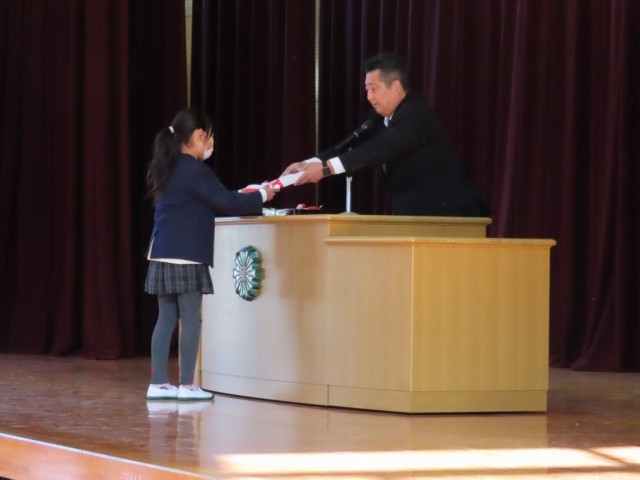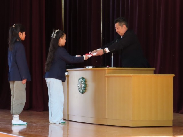 元気に校歌を斉唱した後、校長先生から修了証書を授与されました。