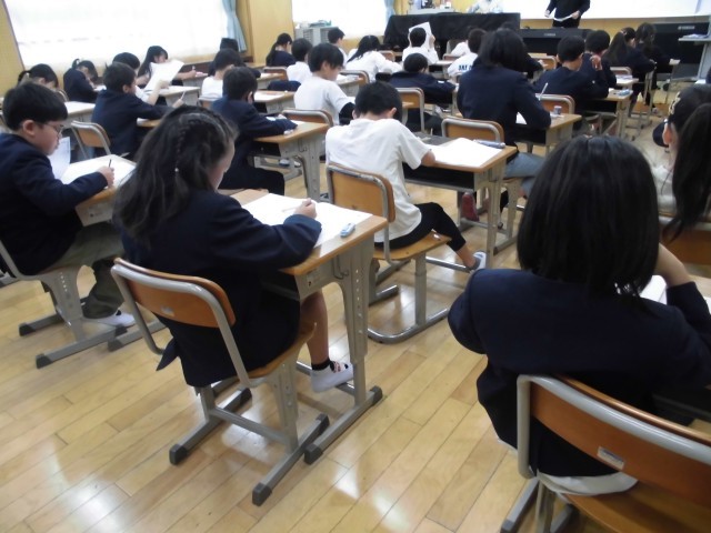 6年生が全国学力・学習状況調査、4・5年生がCRTに取り組んでいます。
