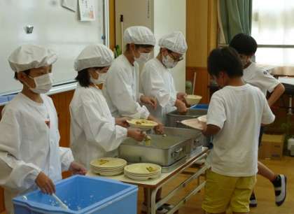 給食当番さんだけで、手際よく上手に配膳しています。さすが4年生です。給食のルールを守ってしっかり食べて丈夫な体をつくりましょう。