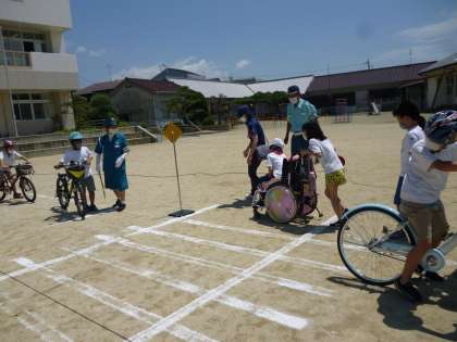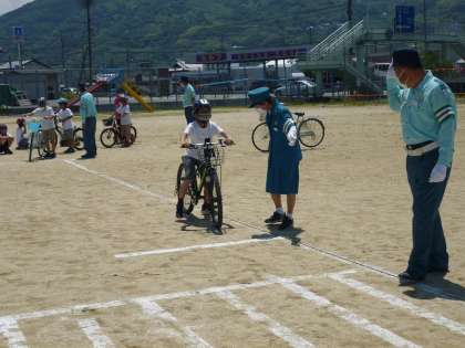 安全な自転車の乗り方について教えていただきました。横断歩道や踏切、信号機のある交差点などの場所を設定して、停止や確認の仕方などについて丁寧に教えていただきました。自分の命を守る大切なことを忘れずに、自転車に乗るようにしましょう。