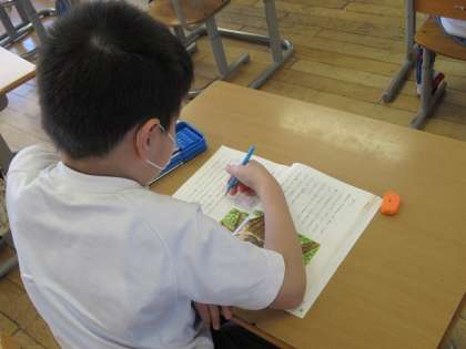 「まいごのかぎ」について学習しています。判読を聞き、確認しながら内容を把握しようとがんばっています。(1枚目、2枚目)