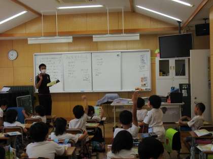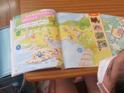 「生きものたんけんに出かけよう」について学習しています。生きものはみんないのちをもっているということを押さえながら、これまでの経験について発表し合っています。