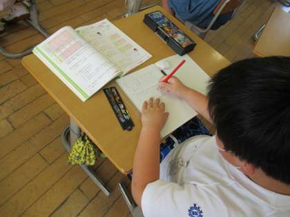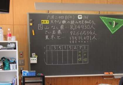 「大きな数の読み方を知ろう」をめあてとして学習をしています。一の位や十の位など、位に注意して読み進めていました。(1枚目、2枚目)