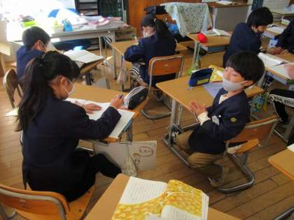 『3年とうげ』のおもしろいところを見つけて、友達と交流しています。友達の文章を読ませてもらった後には、ひとこと感想を添えて返しました。