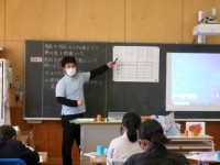 前回に引き続き、笠田高校のお兄さん、お姉さんが来てコンピューターの操作方法を教えてくれました。今回は、プレゼンテーションソフトの基本的な使い方を教えてくれました。子供たちは興味をもって熱心に取り組むことができていました。