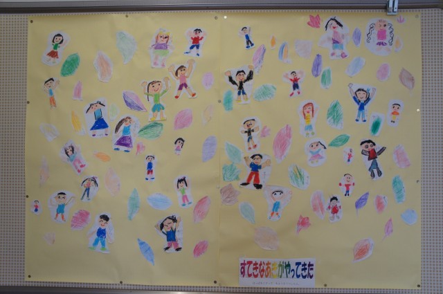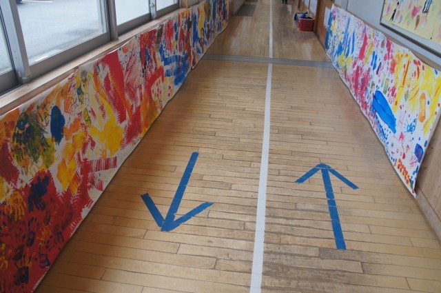 以前支援学校のお友達と交流した時の作品も廊下を彩っています。