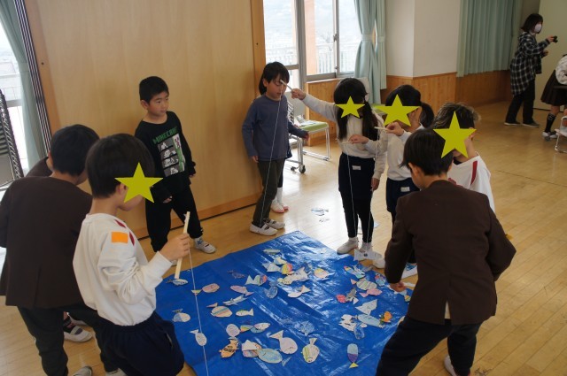 1年生が、今度入学してくる年長さんをお迎えしようと、楽しい遊びを考えました。