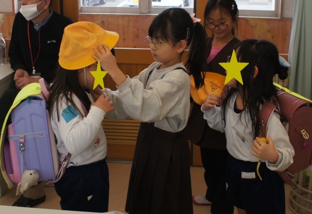 ランドセルを体験したり、本を読み聞かせたり、一生懸命説明していました。