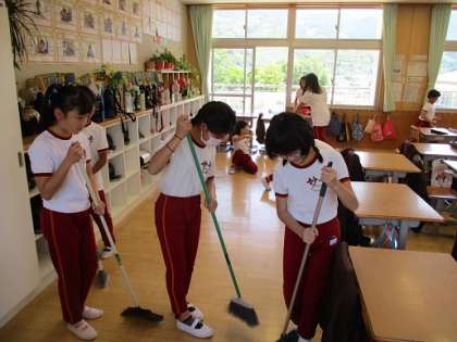 特に高学年児童が一生懸命にするので、それを見て低学年児童も真面目に掃除をします。見ていて気持ちがいいです。
