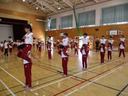 組体操の練習です。気を引き締めて、集中して取り組んでいました。
