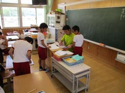A組は算数科、B組は国語科です。両クラスとも、楽しそうに学習していました。