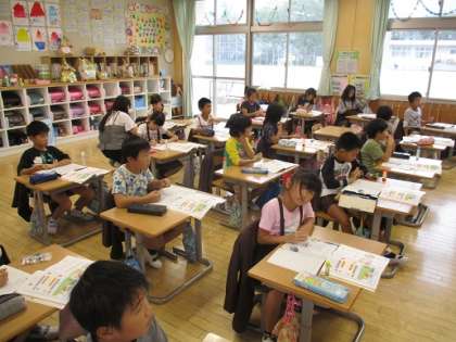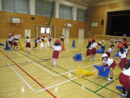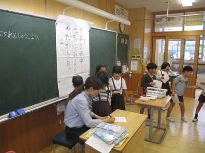 体育科では、楽しくコーン倒しをしていました。競書会に向けての練習も、みんな熱心にしていました。