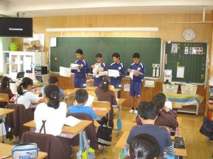 職場体験も最終日です。音読の見本を小学生に示したり、運動場にラインを引いたりしてくれています。本校での3日間の経験を、今後の人生に生かしてください。