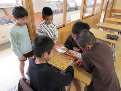 将棋やトランプをして、友達と楽しそうに過ごしていました。