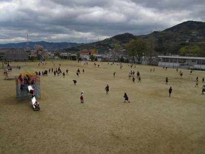 本校児童はよく遊びます。休み時間には、先生と子供が一緒になって遊んでいます。ロング休憩には、約180人運動場に出て遊んでいました。