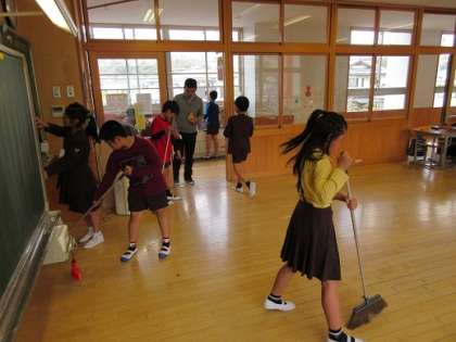 本校児童は、もくもくと掃除をします。いつまでも美しい学校でありたいものです。