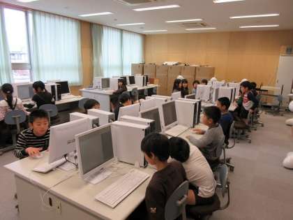 3年生になって初めてのパソコン室です。みんな興奮して学習していました。B組は社会科の学習です。落ち着いて学習していました。