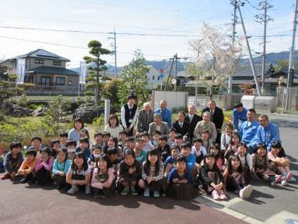 築野食品工業株式会社様より『ヤブツバキ』をいただきました。2年生児童も植樹に参加させていただきました。椿の森が生き返りました。本当にありがとうございました。
