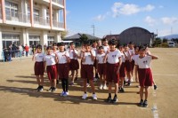 記録会に向けて最後の練習をしていました。プールサイドでは、校務員さんたち二人が、草刈りをしてくれました。
