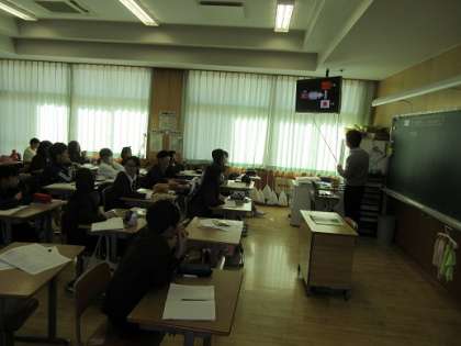 A組は国語科で、条件付きの作文を書いていました。なかなか難しそうでした。B組は、テレビを活用し歴史の勉強をしていました。
