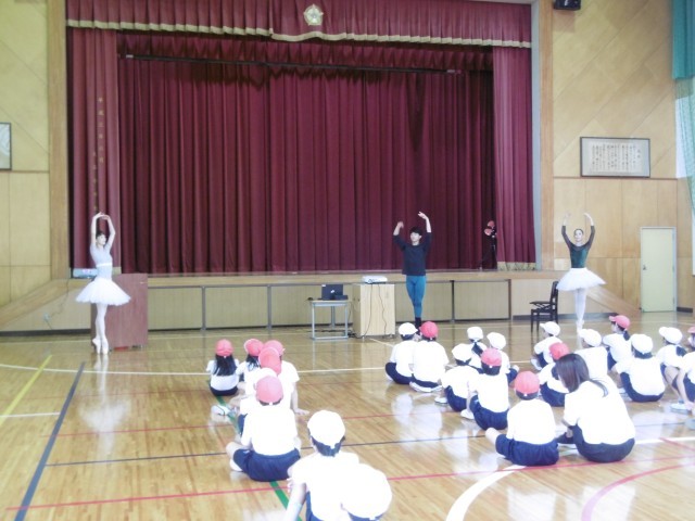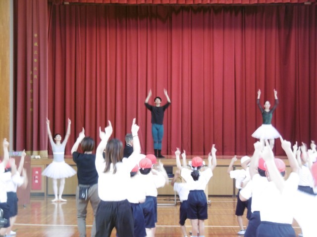 10月30日に行われる文化芸術鑑賞(バレエ)のワークショップを行いました。東京からバレエシャンプルウエストのダンサーの方が、バレエについての基礎知識やバレエの動きを教えていただき、全校で体験させていただきました。当日は、たくさんのダンサーが来校され、56年生児童もダンサーとして衣装をつけて参加します。「くるみ割り人形」を披露してくださいます。保護者の方もご覧になれますので、この機会にぜひ鑑賞してください。