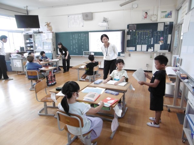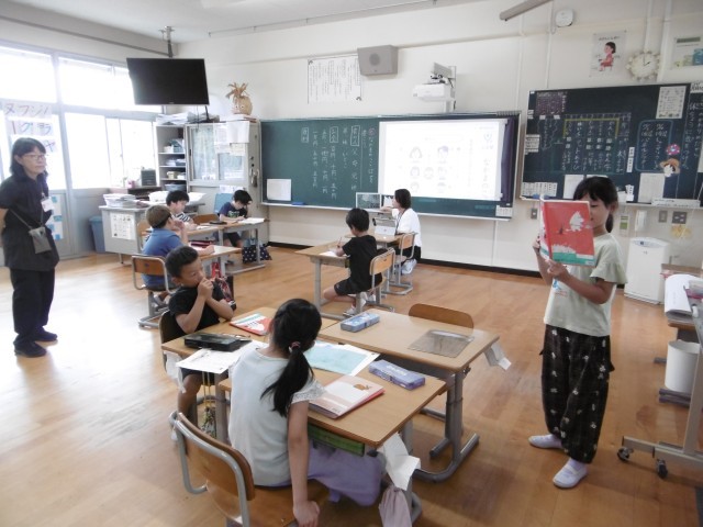 1年生は、くじらぐもの感想を伝えあいました。「父・母・・兄・・・」は、家の人を表す漢字で、「一円、十円、百円・・・」は、お金を表す漢字です。2年生は、なかまのことばを漢字で書きました。