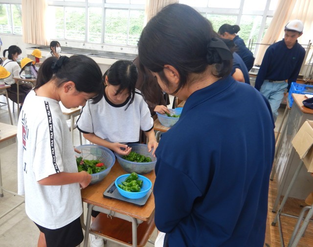 紀北農芸高校では、ピーマンの収穫と袋詰めの作業を体験しました。実際の農作業を通して、食の大切さや農業の工夫について学ぶことができました。