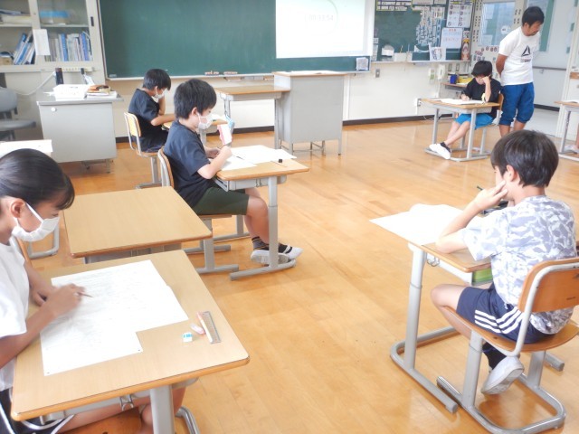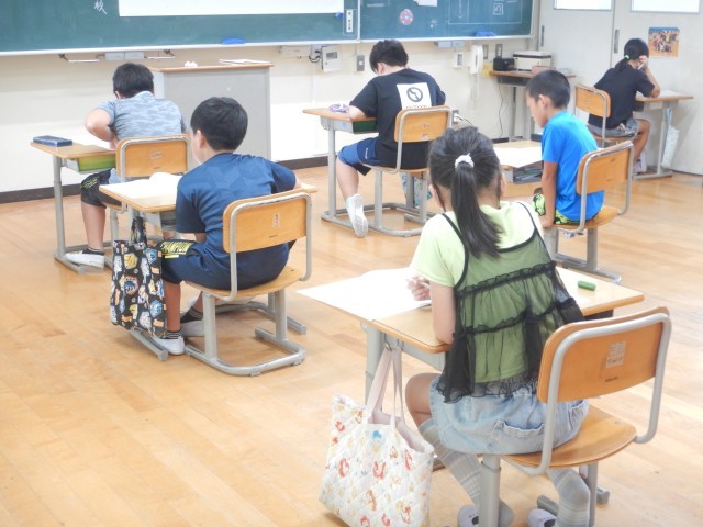 4・5年生児童が和歌山県学習到達度調査に取り組みました。5年生は国語・算数・理科の3教科、4年生は国語・算数の2教科です。問題文を読んで、しっかり考えて解答していました。