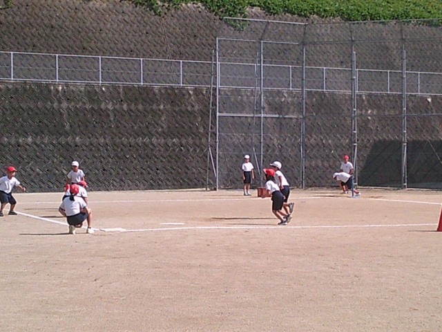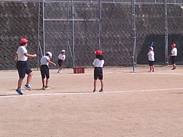 体育でTバッティングをしています。守備の作戦をいろいろ考え、上手になってきたので、点を取るのが難しくなってきました。