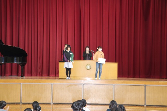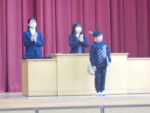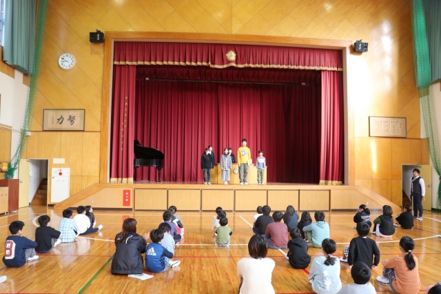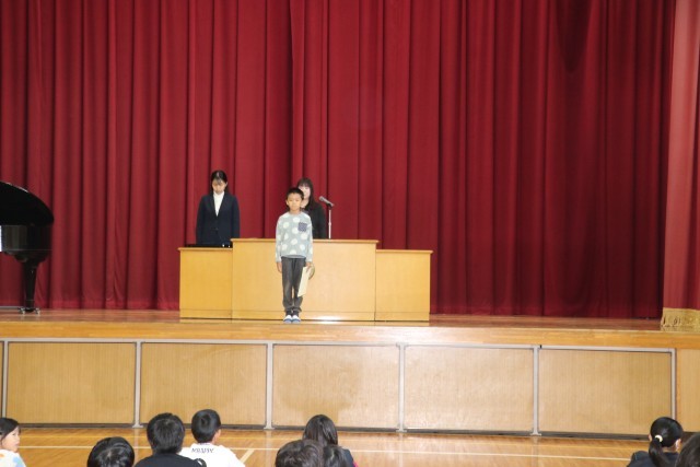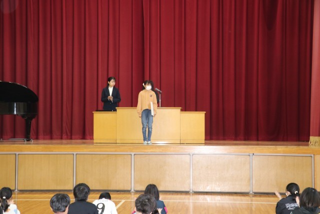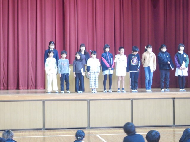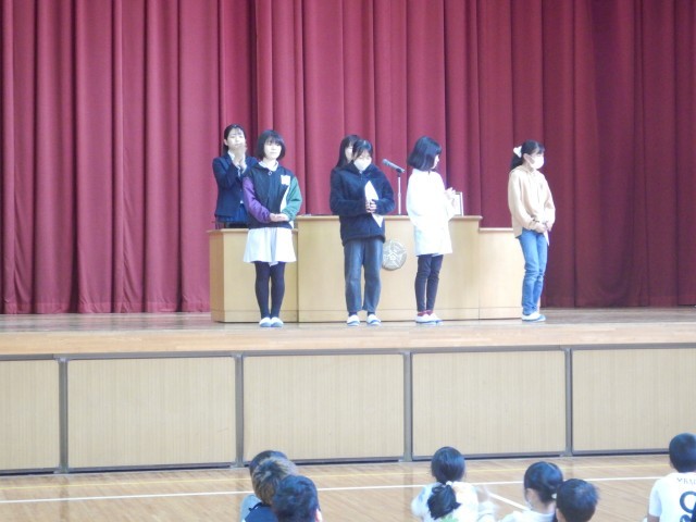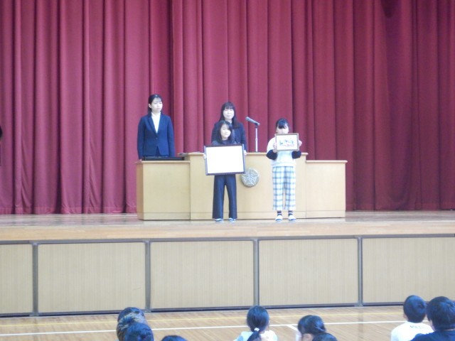 2学期児童会役員、学級委員、専門員会役員の認証を行いました。また、陸上記録会や人権の花運動、わたしたちの工夫展、愛鳥週間ポスター、国土緑化運動ポスターなど、たくさんの表彰伝達を行いました。受賞された皆さん、おめでとうございます。その後、校長先生は、明日から始まる和歌山県人権を考える強調月間(11月11日から12月10日)をふまえ、人権についての話や言葉を大切にする話をされました。みんが幸せに楽しく学校生活をおくるために、自分も大切ですが、自分のまわりの人を大切にする思いを行動として表せるといいですね。