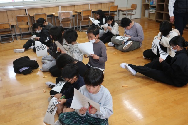 「アヒルだってばウサギでしょ」や「ちいさなちいさな」「めのはなし」など、今日もたくさんのお話を読んでいただきました。読み聴かせの後は、不思議な紙を切って、立体にしました。見る視点を変えながら、目の錯覚を楽しみました。