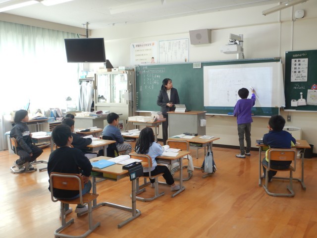 分数の大きさを比べる学習に挑戦。「どっちが大きいかな?」と考えながら、図や数直線を使って工夫する姿が見られました。
