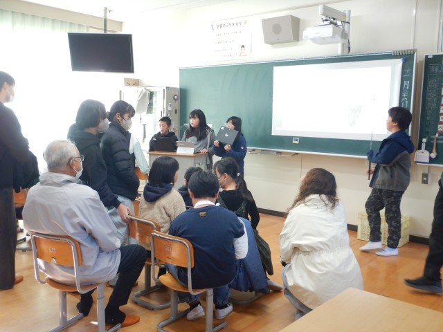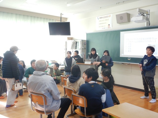柿について調べたことを発表しました。歴史や栄養、地域との関わりなど、調べた成果を堂々と伝える姿が輝いていました。