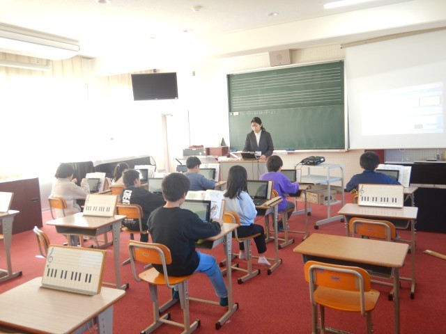 金管楽器の仲間について学びました。音の違いや形の特徴を比べながら、「こんな音が出るんだ!」と興味津々でした。