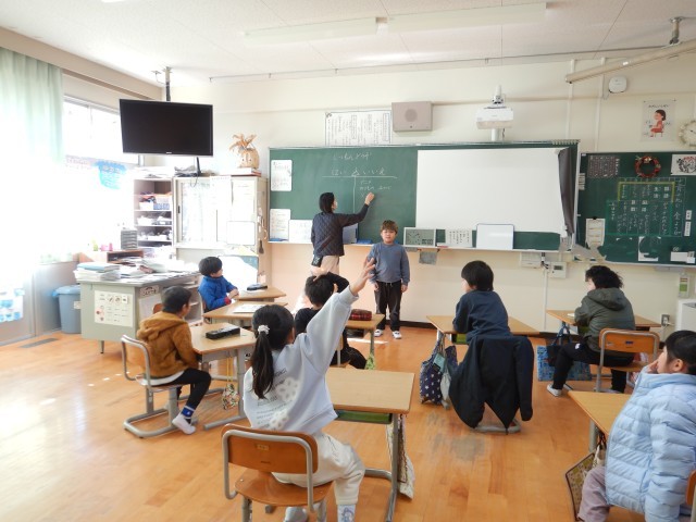 学級会でクイズを楽しみました。クイズを出す人は、まず答えになる言葉を考えます。他の人は、その答えが何か考えるために、質問をしていきます。問題を出した人は、その質問に「はい」か「いいえ」で返事していきます。質問を上手にすると、だんだん答えに近づいていきました。