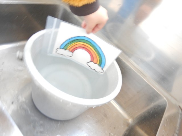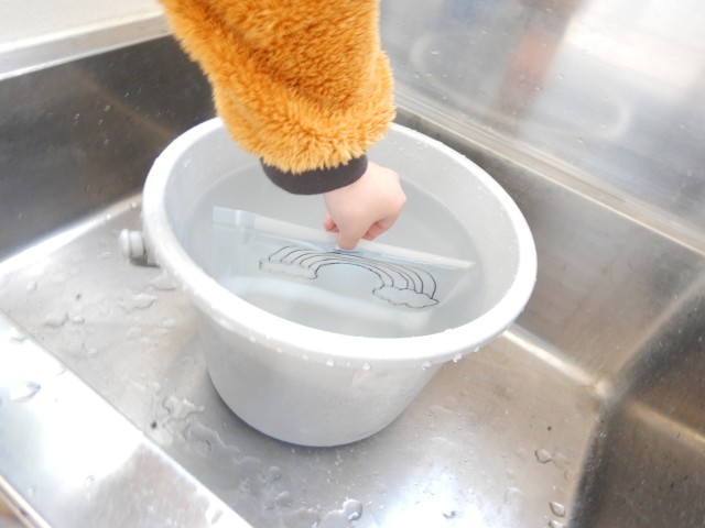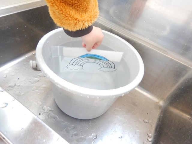 1・2年生は、冬休みの学習の復習、3・4年生は、体育で体ほぐし、5年生は、算数の復習、6年生は、英語で冬休みの思い出を話しました。また、冬休み中にテレビで見た不思議な現象(色をつけた絵が水につけると色が消える)を学校で実演してくれた子もいました。