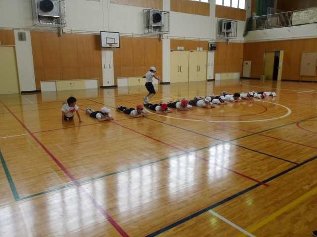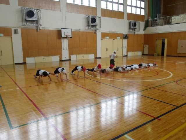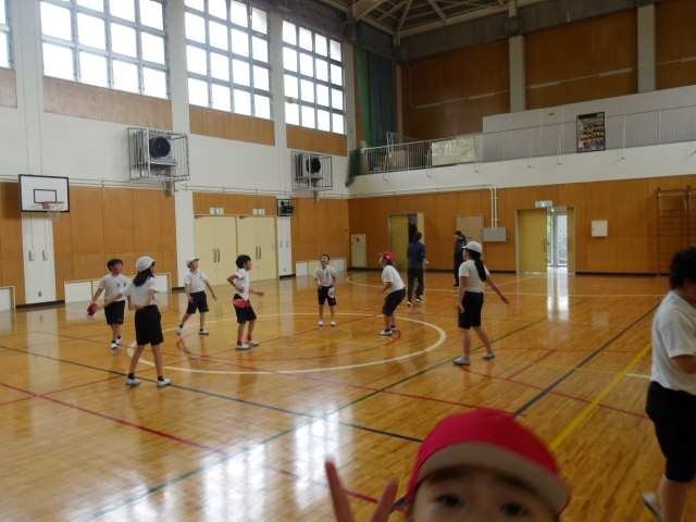 5年生が体育の授業で、体つくり運動をしていました。とても楽しそうな雰囲気で授業が行われていました。