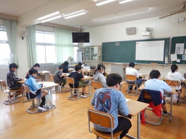 4・5年生は、標準学力調査、6年生は、全国学力・学習状況調査に臨みました。国語と算数の問題に、集中して取り組んでいました。