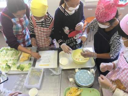 先日の和歌山県立医科大学保健看護学部の学生さんたちによる、「簡単朝食」の調理実習です。