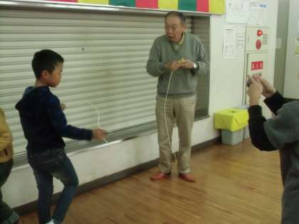 その後、肩たたきをしたり、昔の遊びで交流しました。
