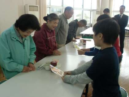 3年生児童より「手作りしおり」をプレゼントし、会が終了しました。