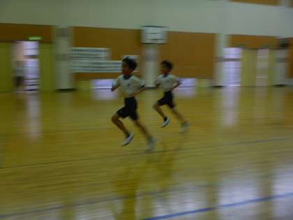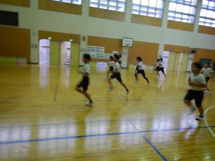3・4年生の体育では、シャトルランをしていました。